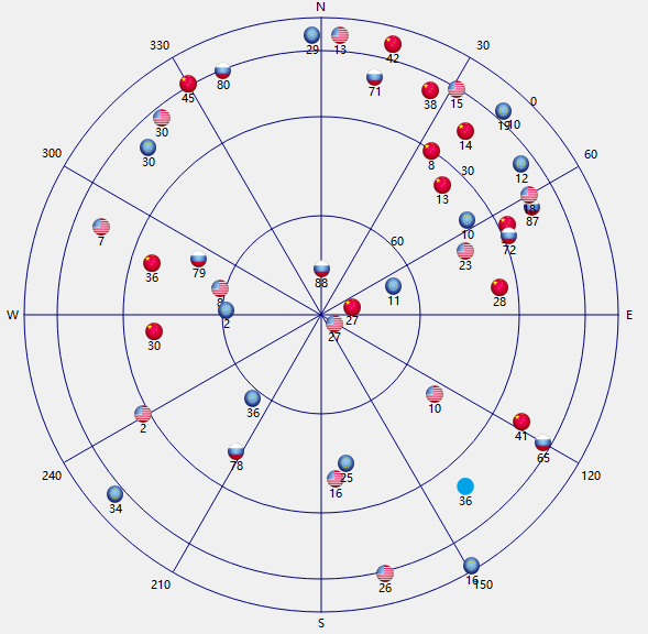 At this point, connect the antenna (ideally place it outside) and the LC29HDA module to your serial adapter (TX/RX cross-over) and connect to your PC. It will take about 30s for a position fix after which the green PPS LED will flash. Set QGNSS to refer to the serial port associated with the adapter, using a 115200 baud connection speed (the default for LC29H) and explore the features of QGNSS.